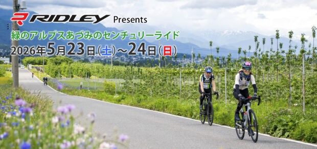新緑の美しい季節に開催。雄大な北アルプスの景観を楽しみながら、長野県松本~安曇野~白馬の田園風景や地元の方々のおもてなしたっぷりのエイドステーションを満喫して走るロングライドイベント。